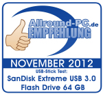 Das neue Extreme USB 3.0 Flash Drive von SanDisk, in unserem Fall das grobte Modell mit 64 GB, hinterlasst einen durchweg positiven Eindruck. Angefangen bei der ordentlichen Verarbeitung, bis hin zu der brachialen Geschwindigkeit, die der Stick tatsachli...